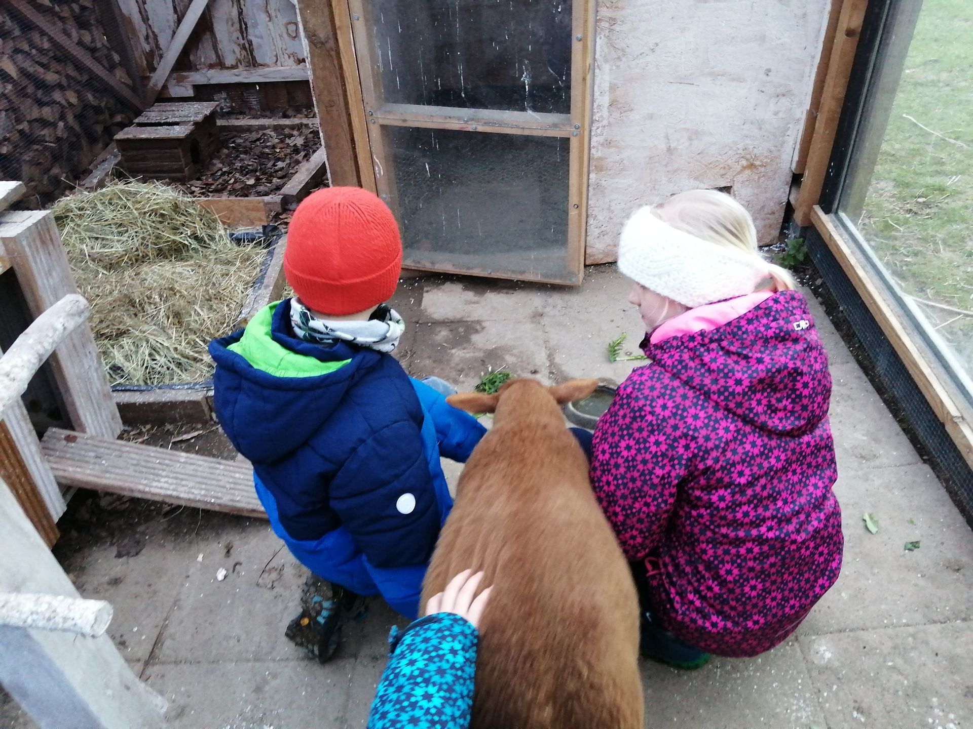 Uno degli obiettivi del nostro lavoro è consentire ai bambini e ai loro compagni di incontrare gli animali in uno spazio protetto per animali e persone. Da noi il contatto con gli animali è sempre accompagnato da un collaboratore, in modo che, oltre a conoscere i singoli animali, possiamo anche trasmettere conoscenze sull'allevamento adeguato alla specie, sull'allevamento adeguato alla specie e sullo sviluppo della consapevolezza per la protezione degli animali e delle specie .